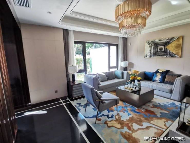 1、客厅虽然位于户型的北侧,但因有着庭院,外加南向有大面积落地窗,客厅也可以享受充足的采光功能,看似朝北的客厅,依旧朝南;