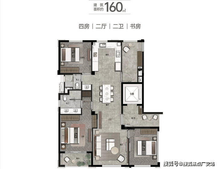 172㎡四房两厅三卫:南北通透、双套房,总价700-850 万。