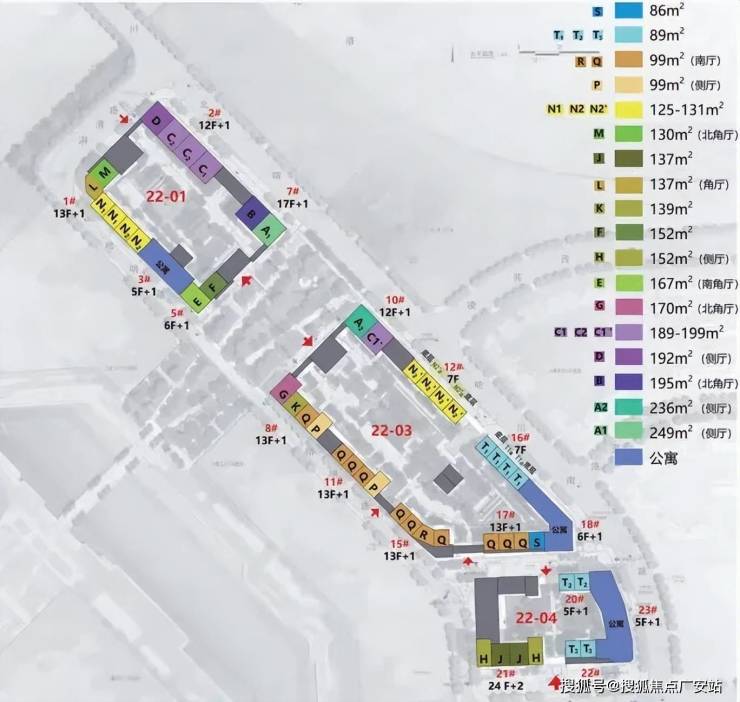 22-01地块容积率3.0,占地面积1.1万平方米,总建筑面积5万平方米,包括4栋住宅楼、2栋商业;