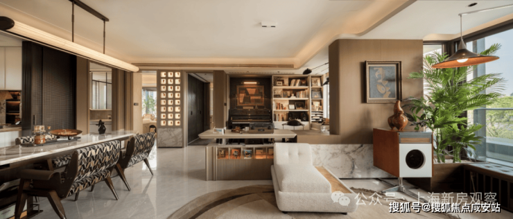 从示范区的打造上来看,保利打造了度假感氛围!采用了国际度假酒店的打造手法,从门头、具有海蓝色的水景、海岛感的花园植物,丰富艺术品的植入,以及非常亮眼的上海首个浮雕水景艺术卡座,营造轻松、惬意的氛围,像这样的松弛场景在项目中数不胜数,给到客户强烈的度假感和松弛感。