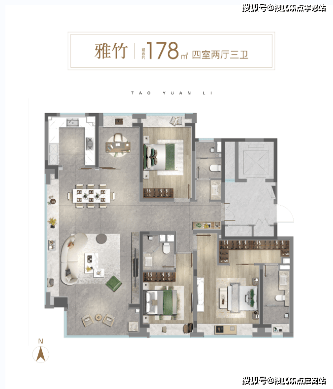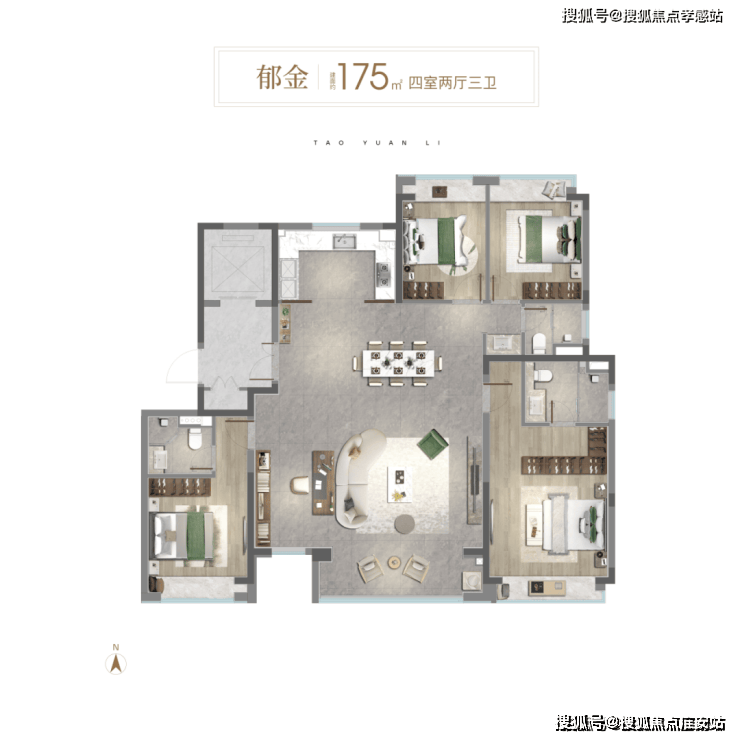 建面约175㎡四房户型▼
