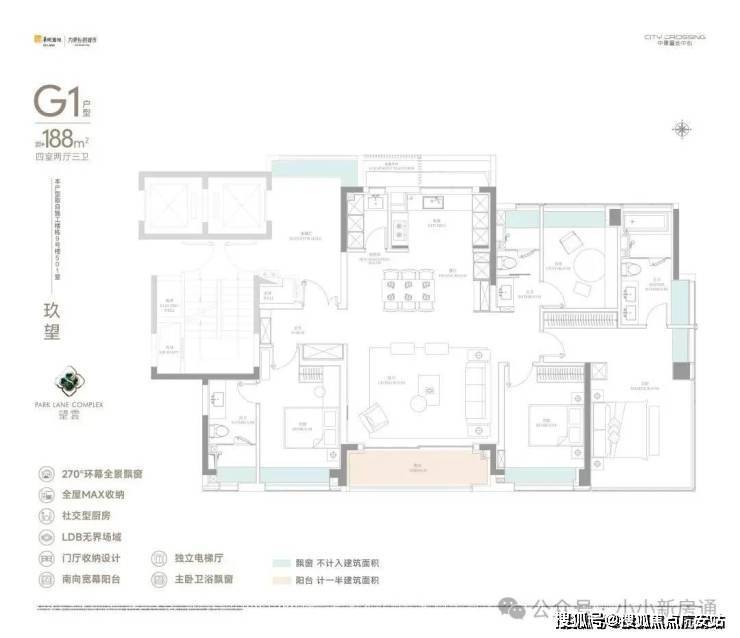 而在户型设计方面,建面约188㎡的4房产品,更是做了全面的超配。