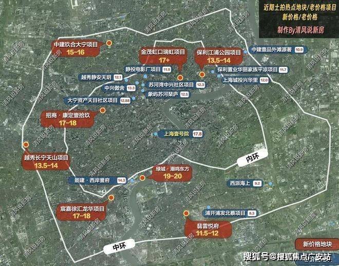 首先,新房维度:在上海核心区豪宅全线冲击20w背景下,18.9w/㎡性价比十足!光看内中环不少热门板块,比如: