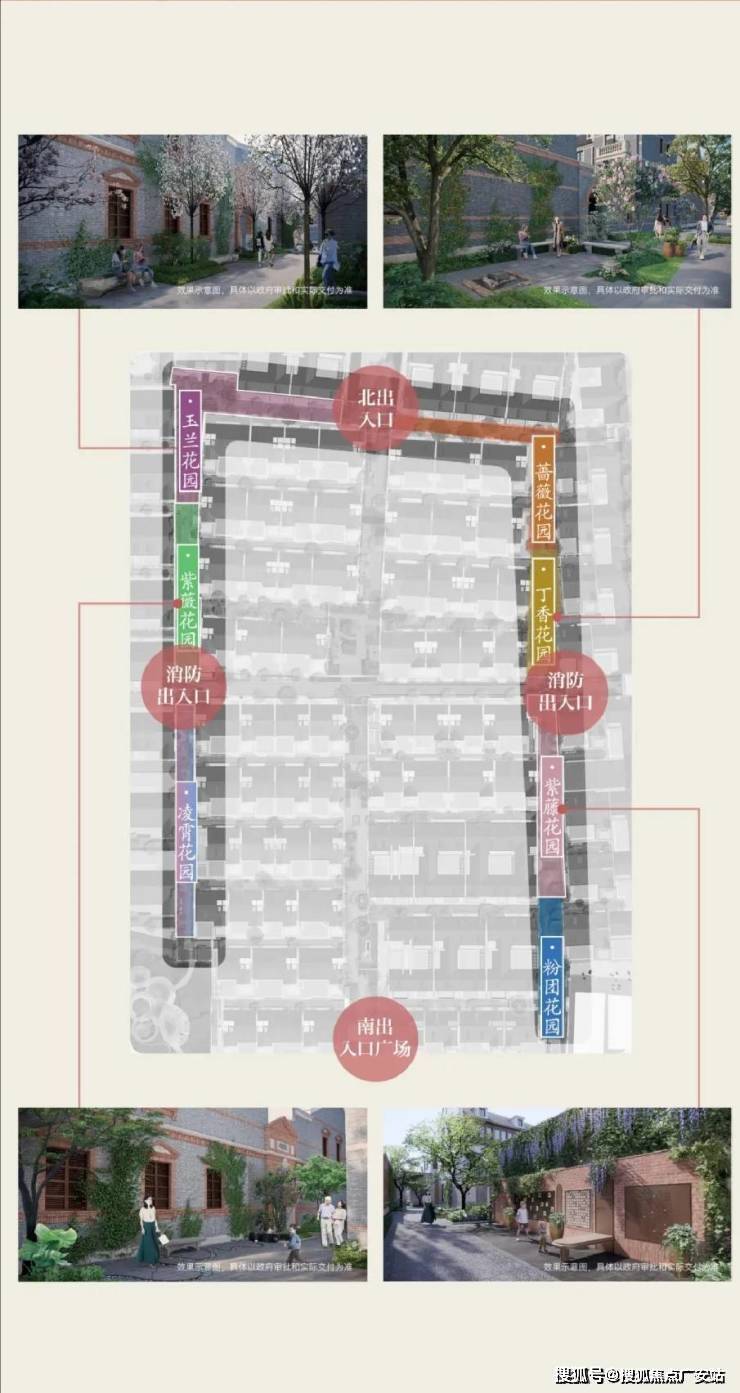 弘安里,提取经典洋房的场景植入社区景观打造,将丁香、紫藤,蔷薇,紫薇……等八种主题花卉,传香入园,串联巷弄8个花园,组成U型景观带,围合一座弘安大花园,叠影海派繁花巷弄里。