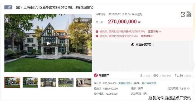 今年5月27日,新华路一幢535㎡花园别墅法拍,以2.7亿元成交,成交单价达到50.46万元/㎡。
