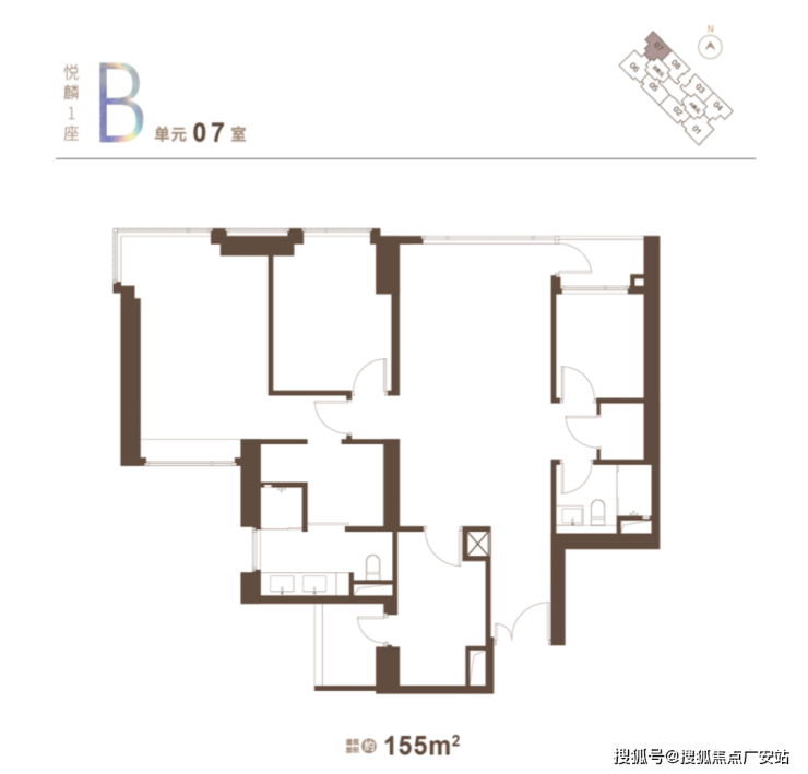 155m² 3房2厅2卫 户型图: