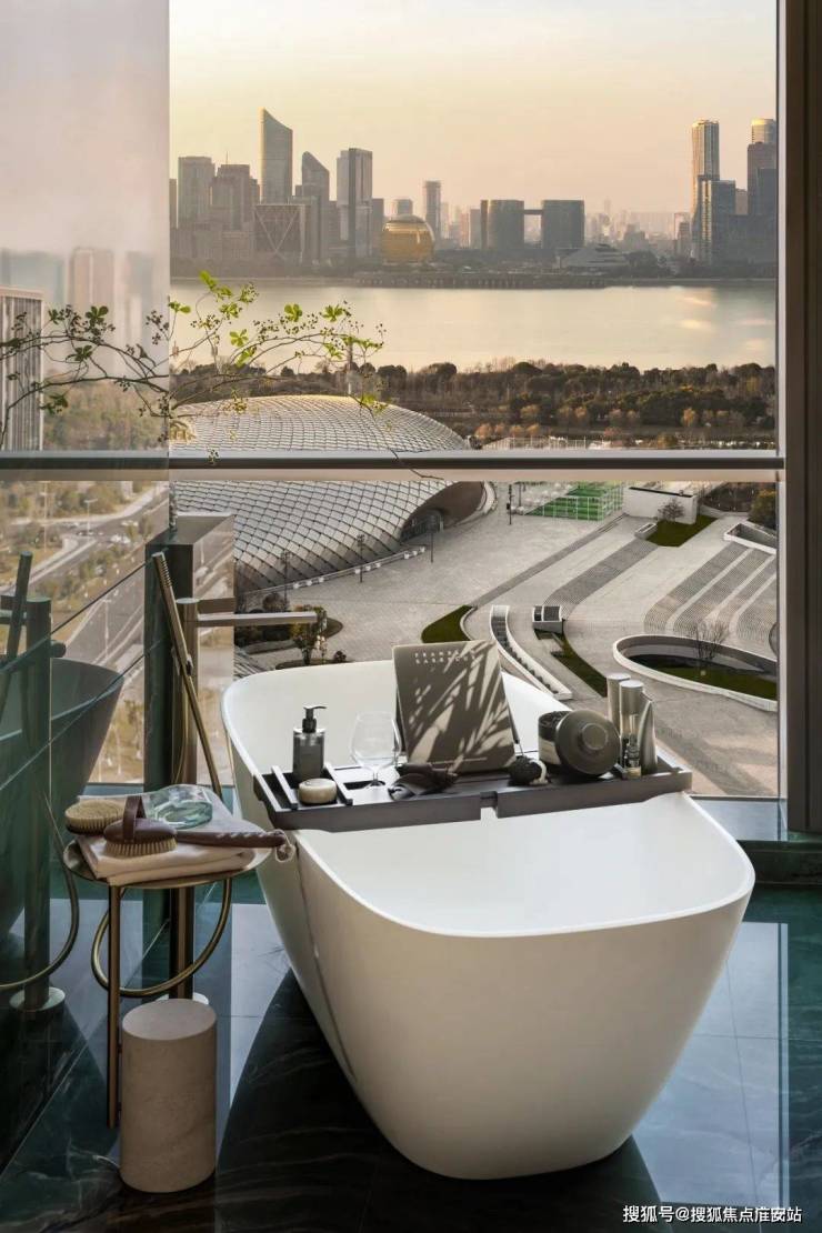一面正对“日月同辉”和市民中心,没有偏角,更没有遮挡。杭州「新世纪中轴龙脉」正在这一视线上,自武林中心—市民中心—奥体中心,这一格局奠定了杭州整体城市的气运走向。另一面近瞰“大墨镜”和“莲花碗”,世界赛事、重量级政经盛会经纷至沓来,伟大时刻在此上演,媲美世界湾区的时代发展立意尽汇于此。