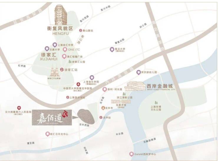 区位:徐汇滨江核心、龙华板块,衡复风貌/徐家汇/徐汇滨江黄金三角,距黄浦江直线约800米