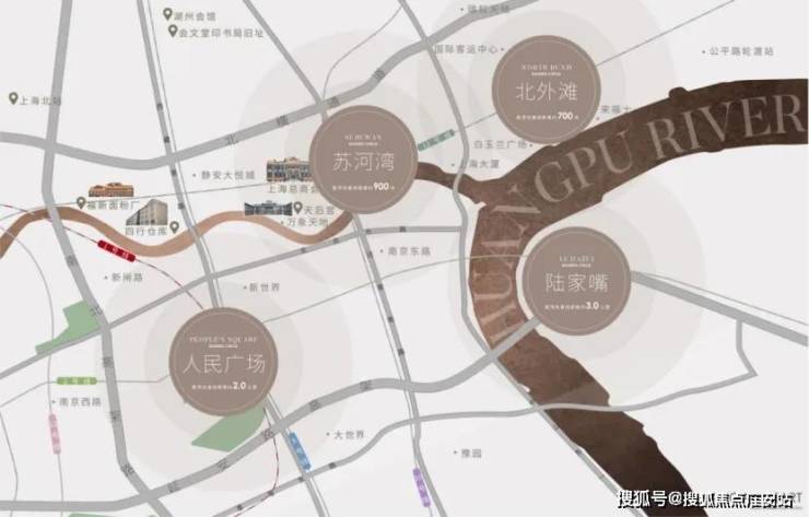 3、繁华之心:外滩烫金三公里覆盖人民广场、外滩、陆家嘴等顶级商圈,同时苏河湾区域总商业开发体量接近100万㎡,共同形成CAZ商业黄金水岸,打造比肩新天地繁华生活。