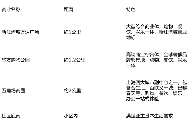🛍️顶级商业配套环伺:直线约1公里可达新江湾城万达广场、悠方购物公园,2公里范围内覆盖五角场商圈(合生汇、百联又一城等),满足高端购物需求