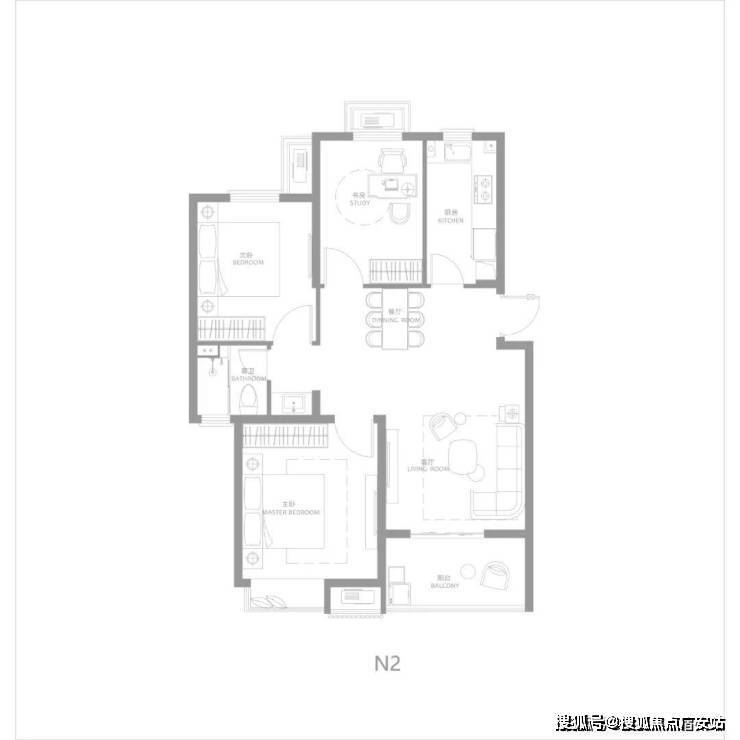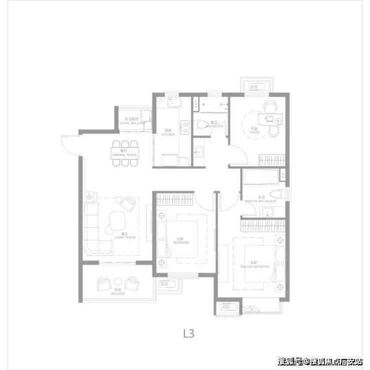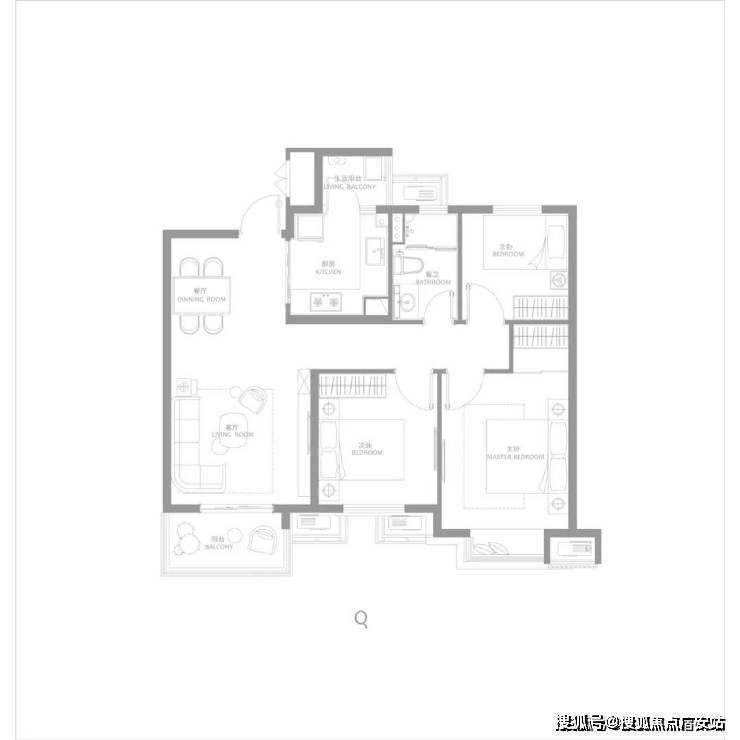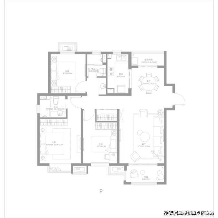 建面约116㎡三房两厅两卫,南北通透,户型方正,主卧大套房,带阳台与独立主卫,更舒适的居住尺度。