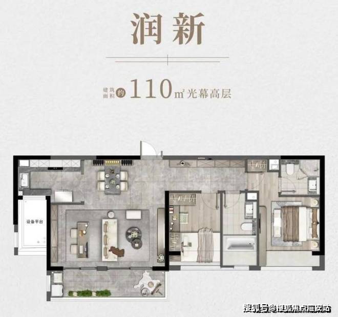 户型方面,110㎡户型非常创新,“一字”布局在苏州市面上几乎看不到同类产品。南向面宽达16米,三房两厅两卫设计,六开间朝南,整体采光无敌。不过这个户型南北不通透,狭长的过道也造成面积浪费。