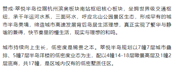 翠悦半岛售楼处电话☎:400-865-7114(预约看房热线√√)