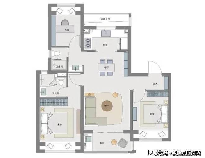 1、建面约92㎡做到3房2厅2卫,控制总价的同时将功能性做到了更大化