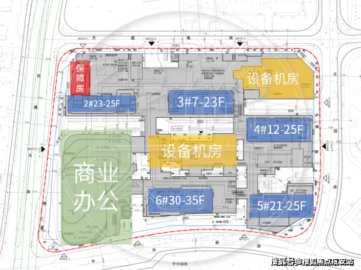 根据设计方案显示,项目拟建5栋高层住宅,1栋保障房,社区内建有商业、办公、公共服务设施和配套用房等。