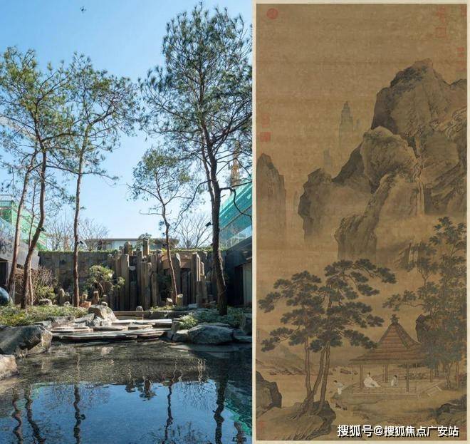 ▲桂月云翠实景图,左图;仇英《松亭试泉图》,右图