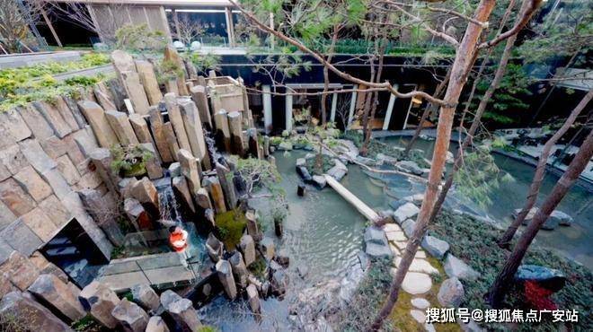 进入下沉式庭院,就是进入了一个空山幽谷的小世界——瀑布冲刷石块的水流声,让整个下沉式庭院显得更加幽静。