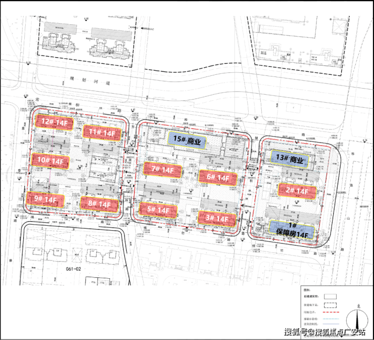 根据项目规划设计方案,拟建11幢14F住宅(含1幢保障房)、以及商业、配套用房等建筑。