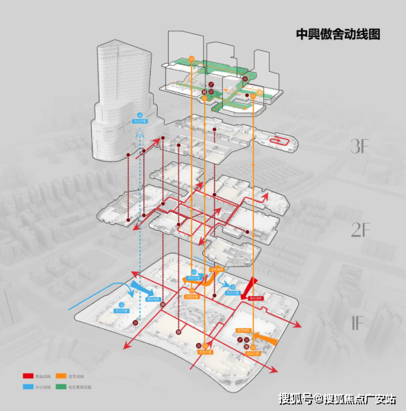 虽然商业和住宅垂直融合,但住宅动线和商业动线是永不相交的“双轨制”模式。