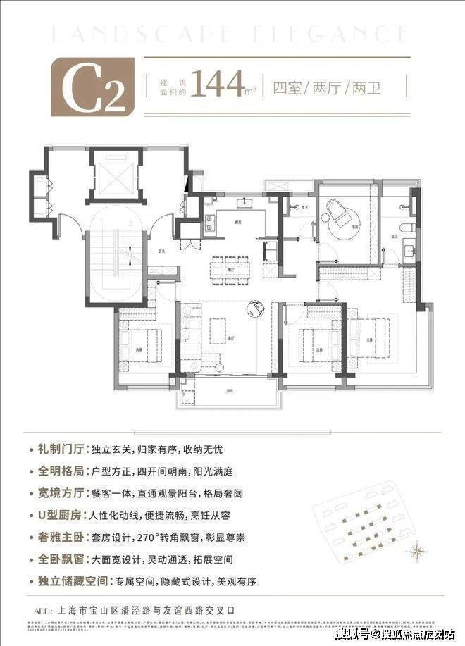 如果预算充足,建面约144㎡的4房洋房产品,更值得改善购房者臻藏!得房率约79%,四开间朝南,面宽阔绰,而且富含各类收纳空间,无论是三孩或三代同堂的家庭都能满足居住需求。