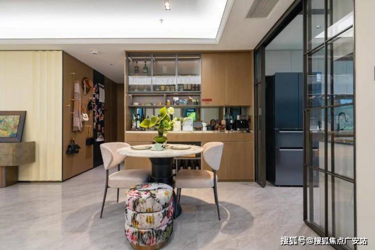 从进门开始,到餐厅旁边的日咖夜酒吧台,都被设计成了储物空间。
