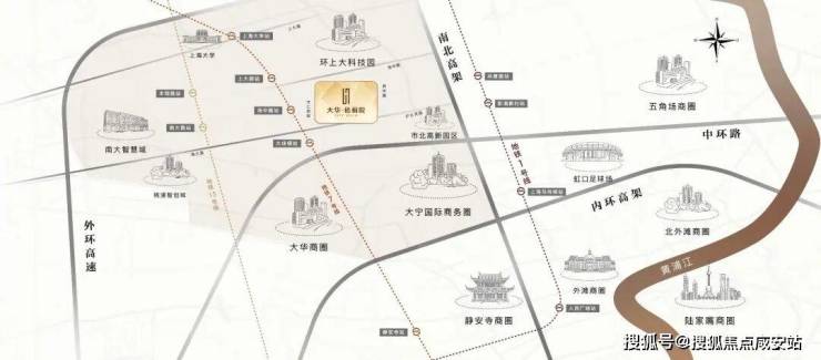项目距离7号线场中路站直线距离约700米,在步行快速可达的范围内。自驾方面,项目与中环直线距离仅约1.4公里,与南北高架直线距离约2.5公里,出行非常方便。