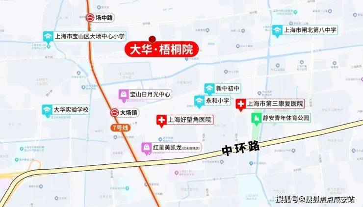 该项目位于宝山区大场板块,地处界华路和场中路交界处,靠近大华老镇嘉年华,旁边就是地铁7号线场中路站。