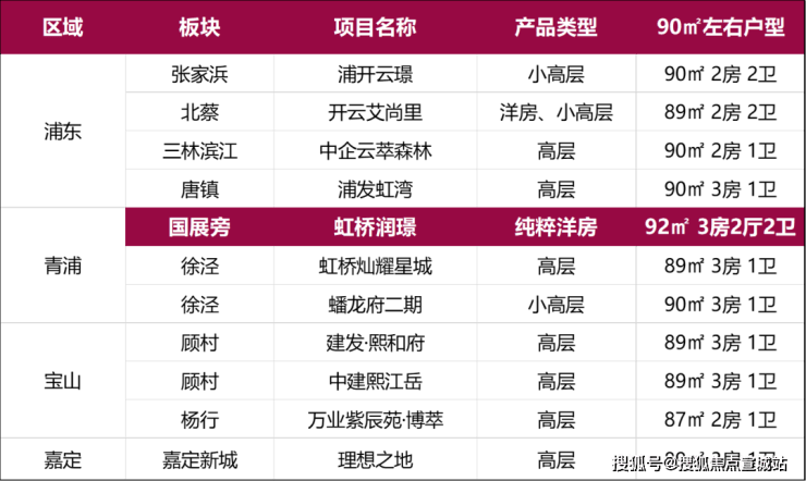 从统计中可以清晰地看到,只有浦东的两个项目做到了2房2卫,而且浦开云璟往期8.95万/㎡,开云艾尚里9.8万/㎡;