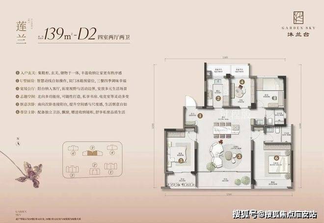 一梯一户设计私域电梯厅,是豪宅市场方能一见的专属礼遇;餐厨客厅阳台一体化,呈献视线时时相交的家庭聚场,形成罕见的全屋南北多阳台,莳花弄草、家政晾晒各得其位互不相扰。约23.4㎡精奢主卧套房,自带独立衣帽空间,贴心预留梳妆台位置,包容朝夕起居的静好日常……