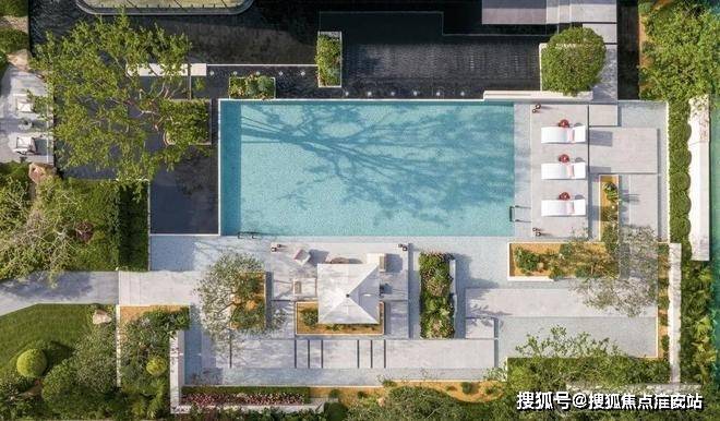 ✦四重景观组团入口景观、静谧水院、林境空间、度假戏水池四重主题景观,循着高台层层铺叙递进。