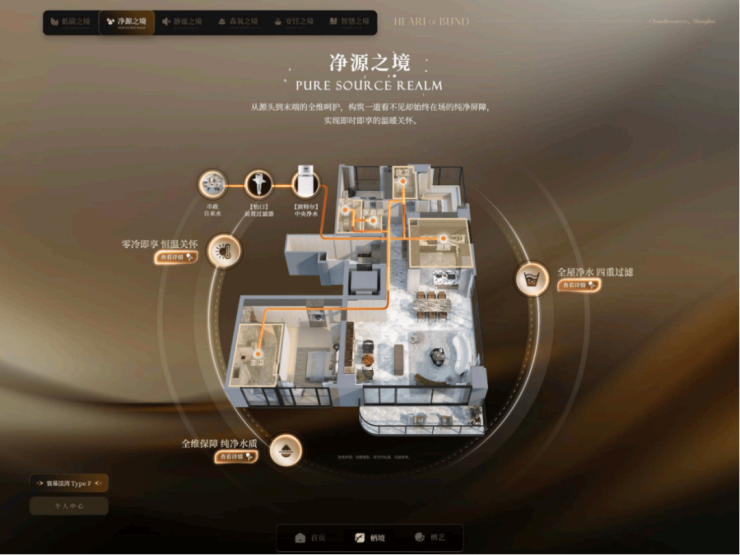 比如用三重排烟+大金空调新风二联供打造独特健康空气系统;用医用级水管+净软水四件套+优质热水器打造全维净水系统,从根本上消除业主全家人的呼吸、饮水健康问题!