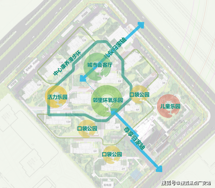 雅乐云庭融合自然之意,以多重绿植组团效果,构建“一环二轴多亮点”的景观空间结构,中心康养漫步环,让健康生活在自然里发生;礼仪归家轴、尊享归家轴,铺排业主归家的仪式感;邻里环氧乐园、城市会客厅、儿童乐园、活力乐园、口袋公园,功能迥异却紧密相连,自然绿意,围合生活之美。