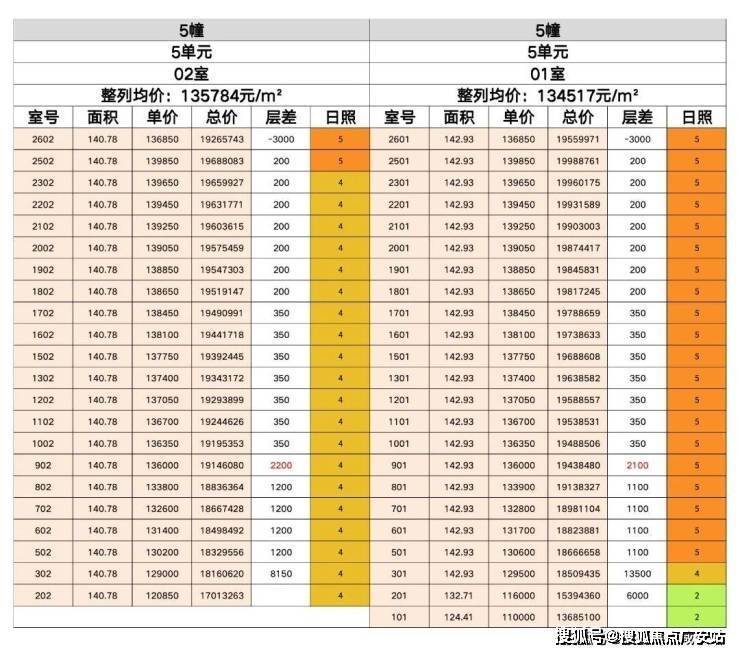 8层与9层价差巨大,但二者日照条件几乎相同。8层窗外是南侧综合体的屋顶花园,很具性价比。在140平面积段的户型中,5号202堪称“性价比之选”。它不仅是该面积段总价最低的房源,底层架空设计还规避了返水隐患。