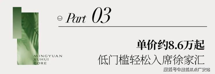 明园·徐汇芯著洞察当代年轻人向往城市中心的置业需求,为他们提供一份安居徐家汇的理想提案:单价约8.6万起,总价4开头,以远低于市场主流的门槛,入席徐家汇优质资产,无论是自住安家,还是投资配置,一步到位,轻松安家徐家汇。