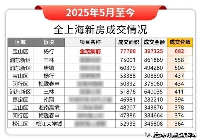 2025年5月至今,金茂棠前更是宝山区新房成交“三冠王”!成交金额、成交套数、成交面积并列第一!