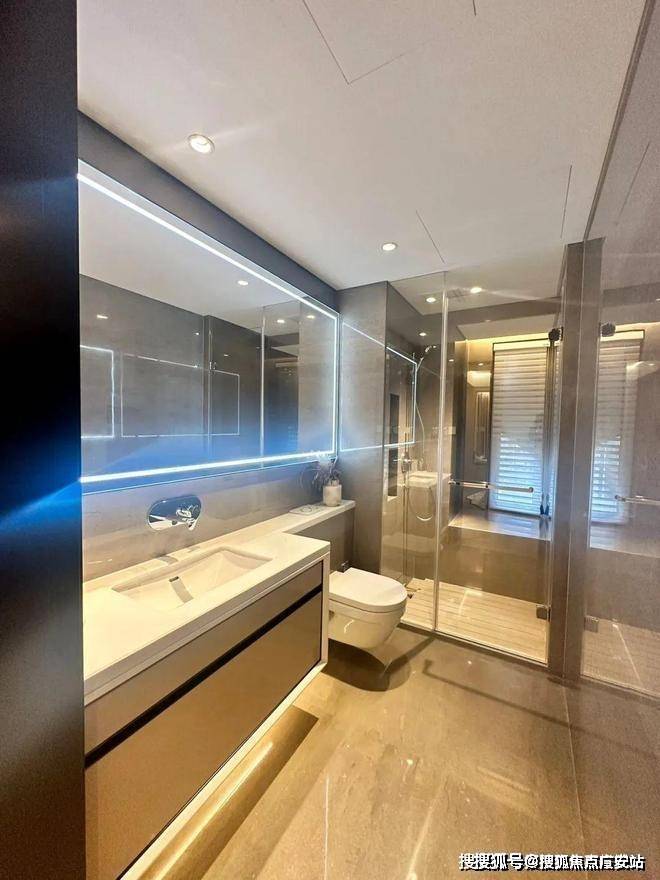 同时,大堂墙面全部采用定制弧面铝板,大理石拼花地面与整体大理石幕墙纵贯天地。光这个大堂,就足够惊艳。