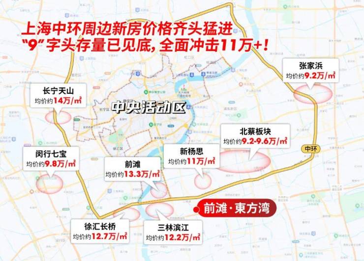上海中环周边的热门地段亦是如此。新房价格普遍在10万+/㎡,部分核心板块甚至达到12万+/㎡,总价千万级才能达到准入门槛。