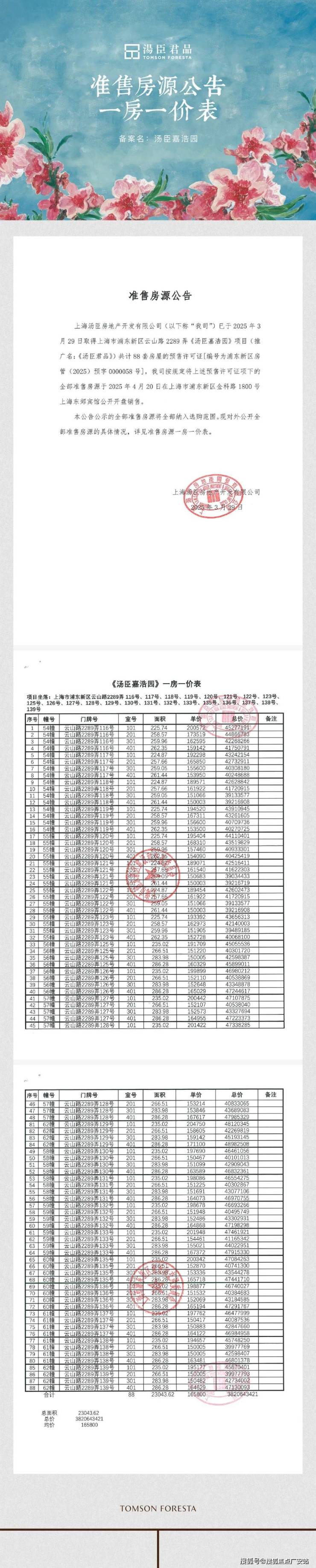 上期一房一价表