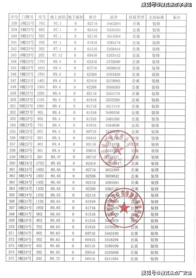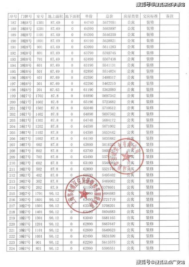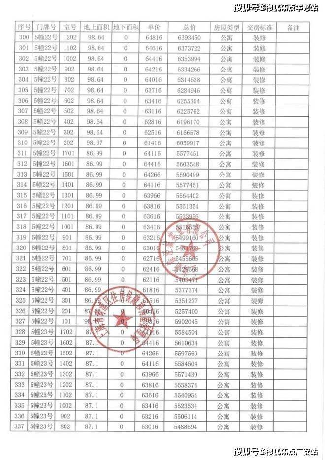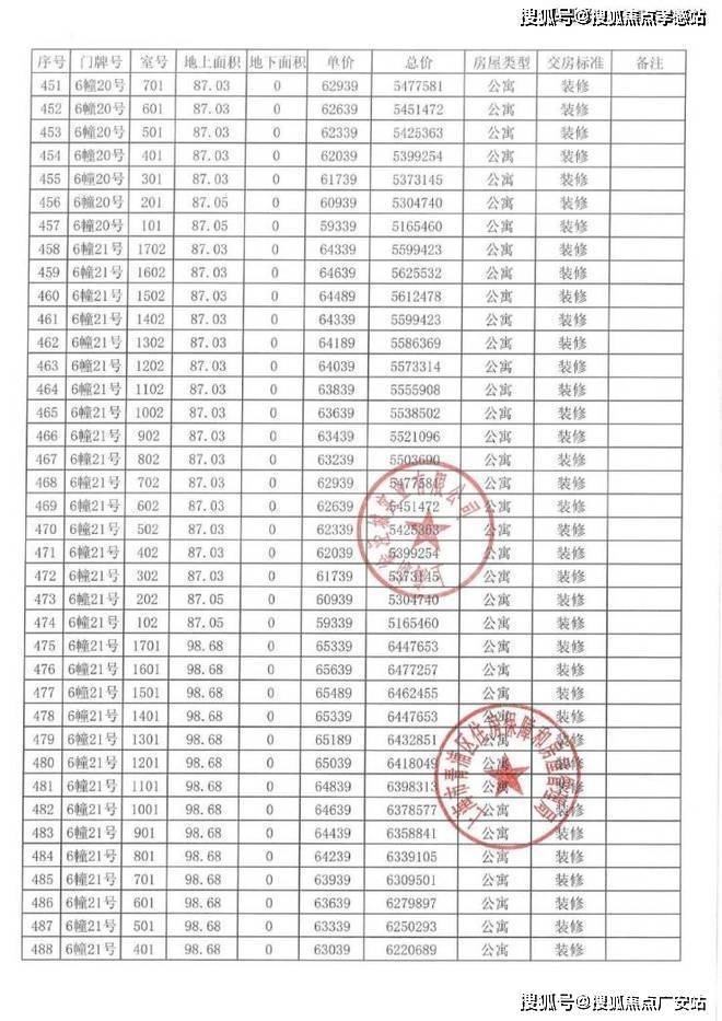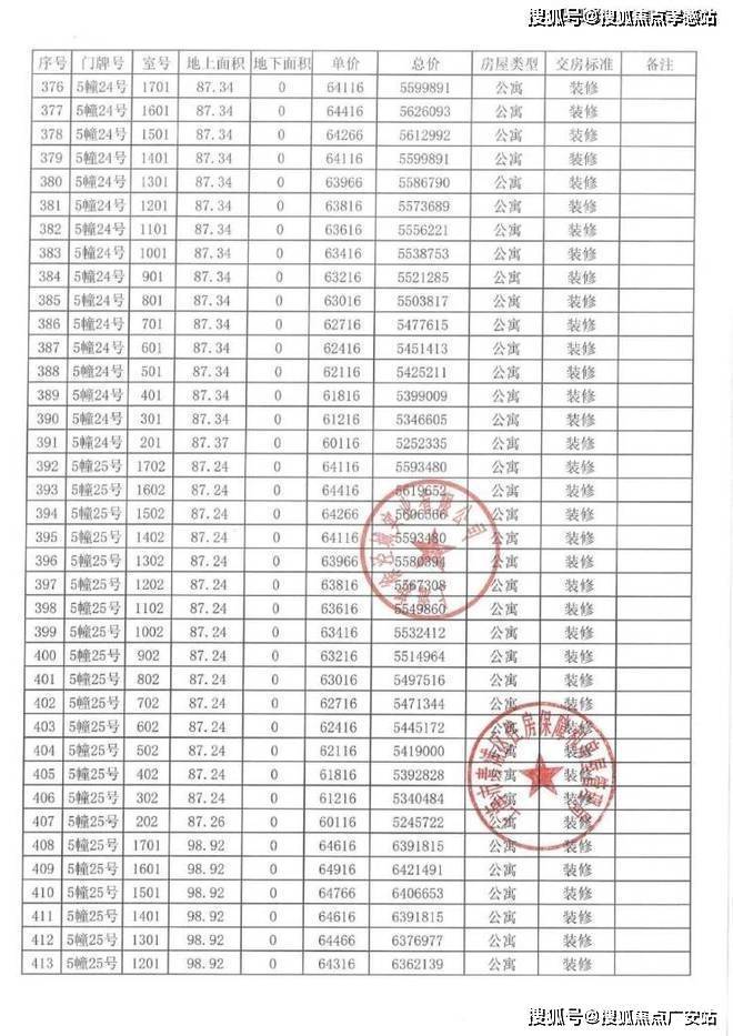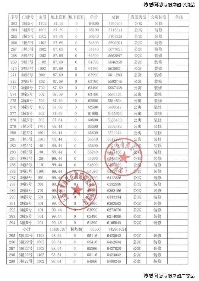 以下为项目完整一房一价表