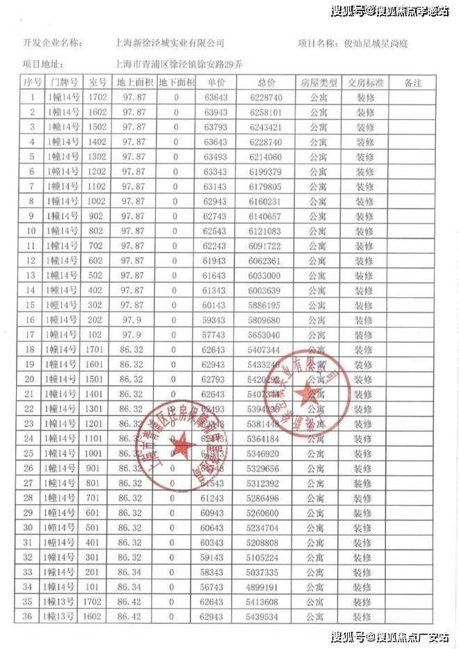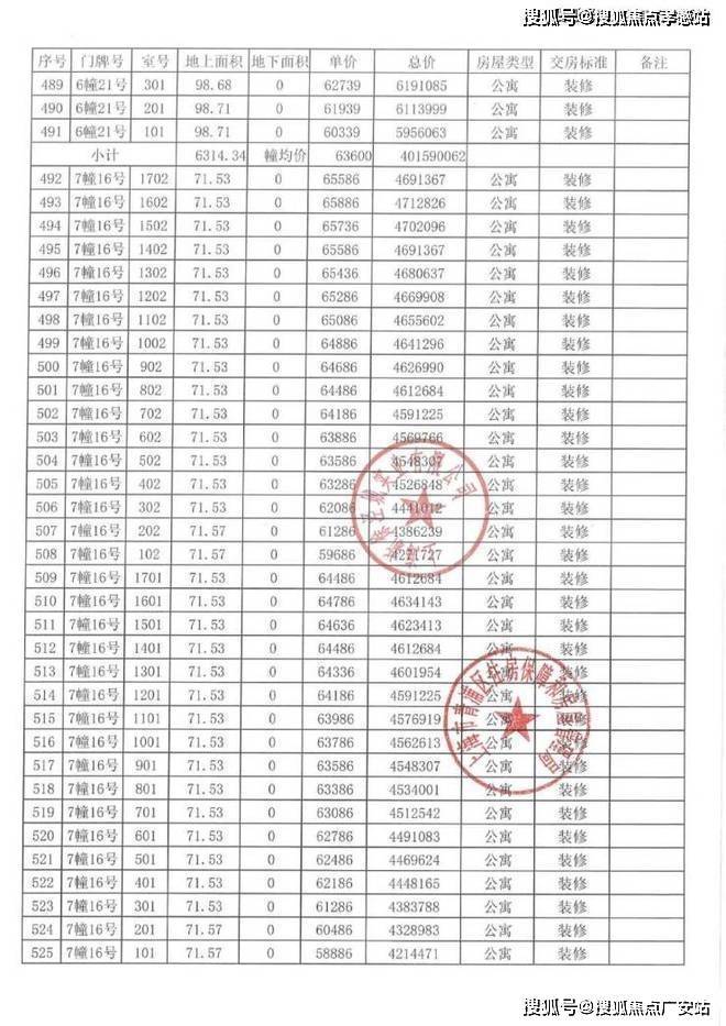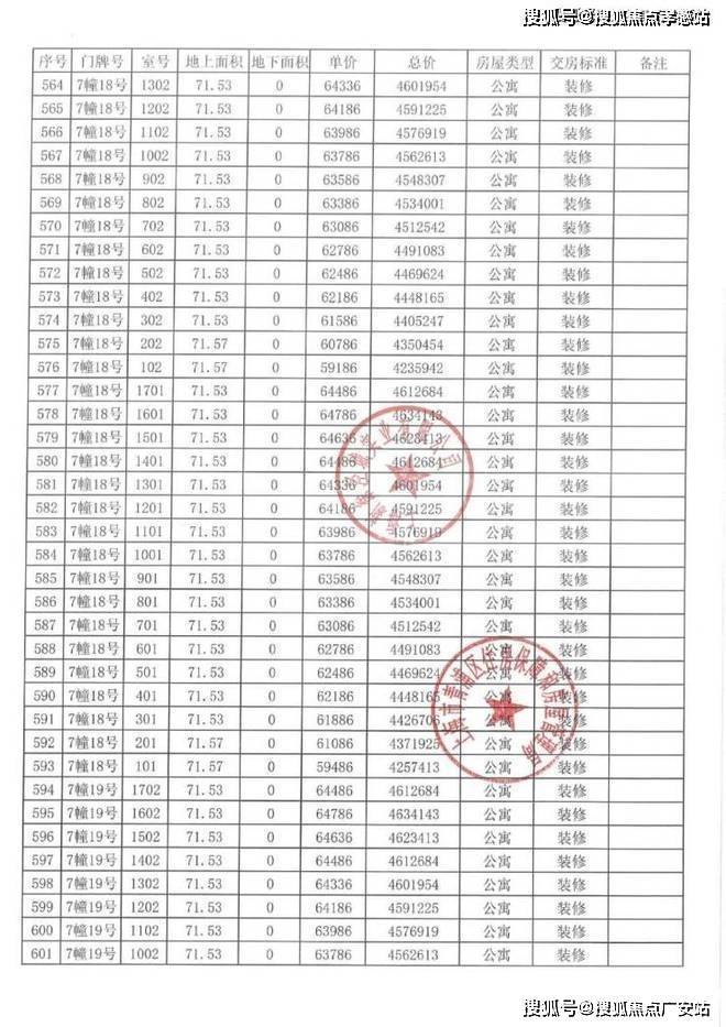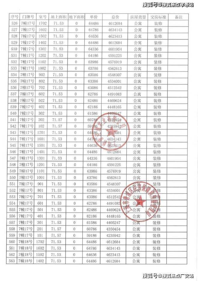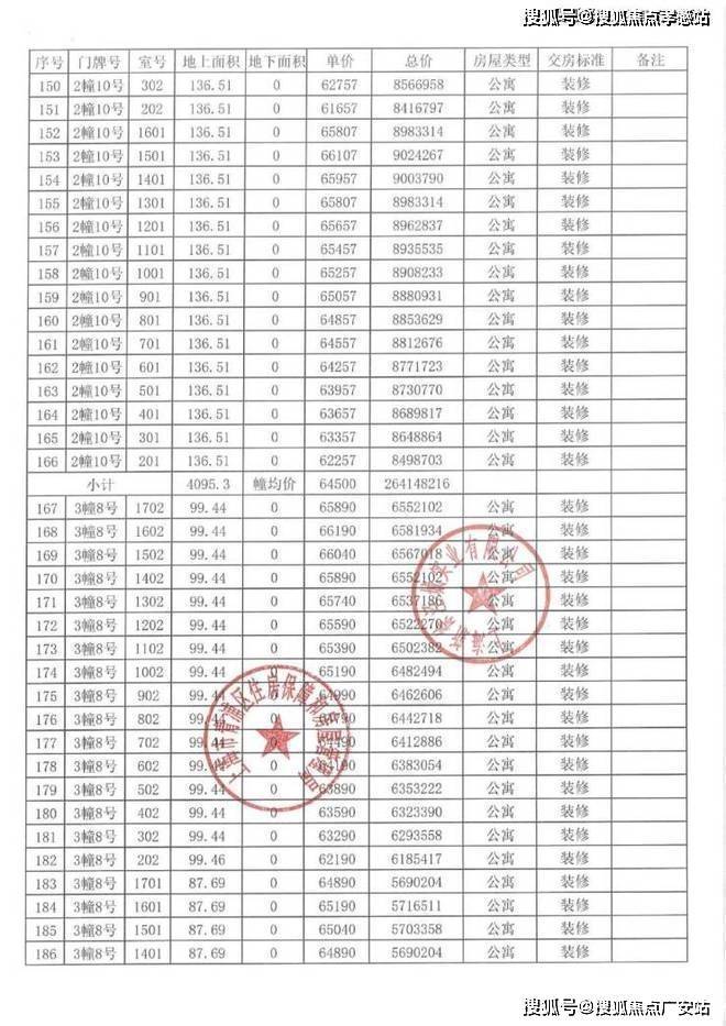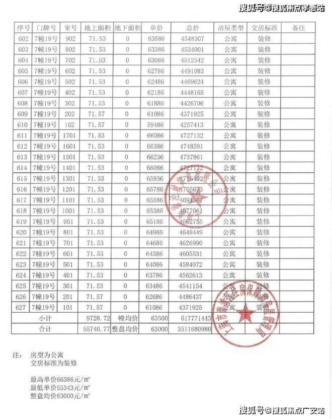 以下为项目完整一房一价表