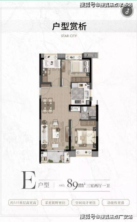 建面约89㎡三房