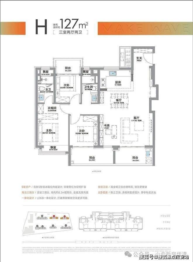 除了标准的三开间朝南之外,项目还采用了S墙设计,释放了厨房空间,让小户型也能放下门冰箱。