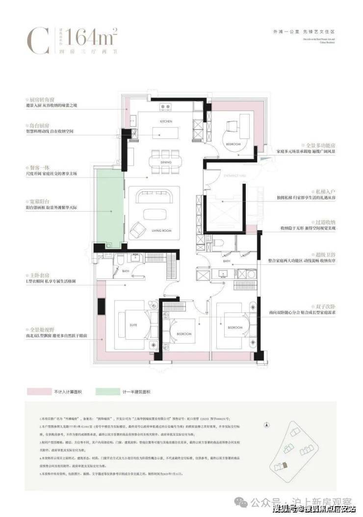 * **突出的户型与装修配置**:产品强调视野与空间感,如部分户型采用270°全景视野设计。精装标准宣称较高,使用了嘉格纳、杜拉维特、汉斯格雅等一线品牌。一些“看不见的投入”,如高气密性门窗系统、医用级水处理系统等,也被作为产品诚意点进行宣传。