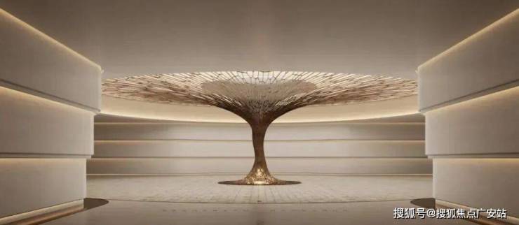 参考台北嘉佩乐酒店的叙事风格呈现第二重门厅。以一座环形的前场庭院作为业主归家的情绪整理空间,打造从繁华到宁静的空间过渡,开启度假般归家体验。