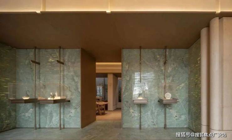 近1000方的月光米黄石材,爱马仕全球旗舰店同款的双曲面叠墙造景,搭配灯光大师“关永权”的戏剧化灯影设计,优雅迷人的气息扑面而来。