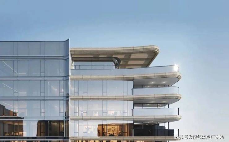 南北两侧立面均是超高的窗墙比,并配以大面落地玻璃。层间线条则是铝材和石材的点缀结合,使用了大量的曲面弧形石材。用的还是跟合肥招商玺同款的「双曲倒弧工艺」,成本非常高。