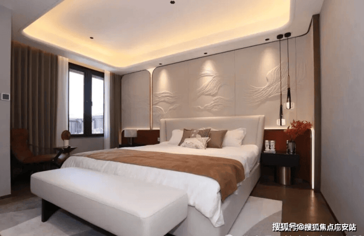 三层称得上是主人独立的“休憩行宫”了 , 一整层都是主卧!就寝区、衣帽间、卫浴间应有尽有,而且尺度还很舒适。