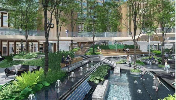 地面上还有可游玩、具有参与感的水景,比如森感公园有一个休闲戏水景观,彷佛走到欧洲罗马的大广场一样,气场十足。