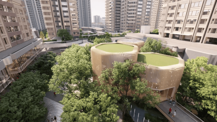 绿野街区:约45度角贯穿的街区,充分将中兴公园的自然引入中心广场,打造游弋、休憩、社交式中央静谧活动区,中央广场有三个自然亲切的树屋,共同形成一个开放且亲密的城市打卡点、自然栖息点。