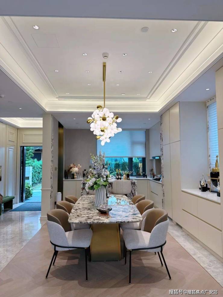 ▍▷在室内设计上,入户大堂采用二层挑空设计,高贵大气,凸显空间感,提升大平层的整体价值。另外,充分利用南侧联排区屋面绿化及景观绿化,将联排区的优良景观引入大平层,将景观利用率做到最大化。